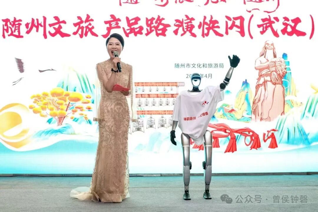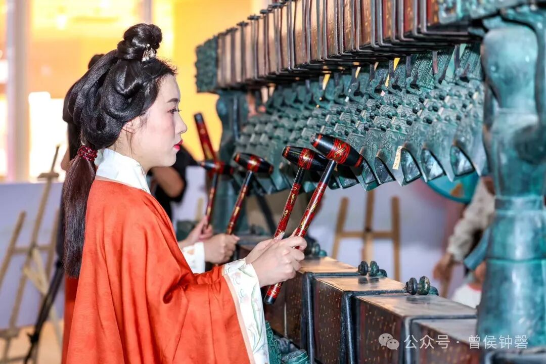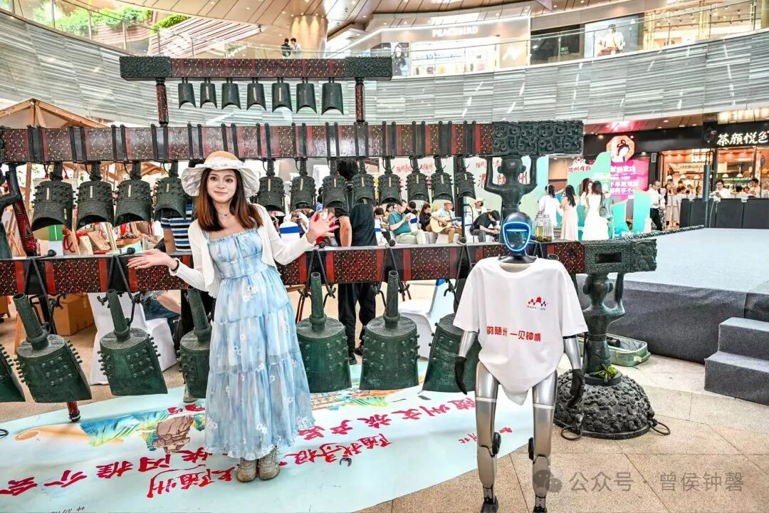为更好的推介“炎帝故里 编钟之乡”城市名片,随州市曾侯乙编钟编磬文化有限公司与高科技公司组成了“非遗+科技”的展演方式,用现代人形机器人敲击传承千年的青铜编钟,通过跨界融合的方式吸引了数万名市民驻足互动。现场表演《宴飨盛乐》等编钟乐舞曲目,青铜编钟与光影舞美和谐呈现,再现“华夏正音”的礼乐文明。